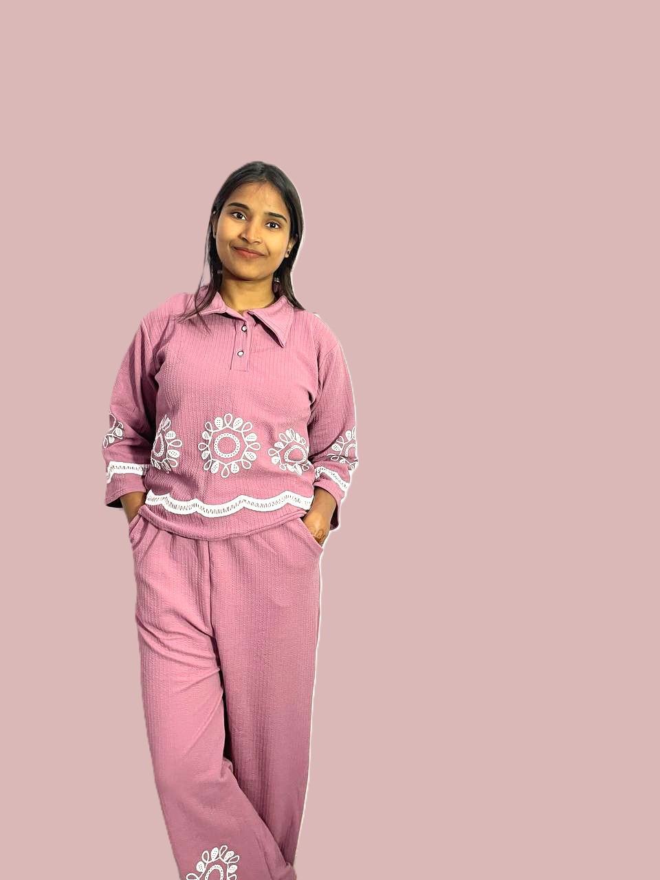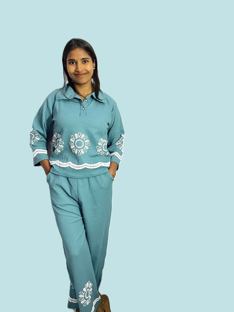 Made from soft, breathable fabric, it feels gentle on the skin and allows free movement. Ideal for casual outings, travel, lounging, or daily wear, this co-ord set can be styled with sneakers or flats for a laid-back yet fashionable vibe.