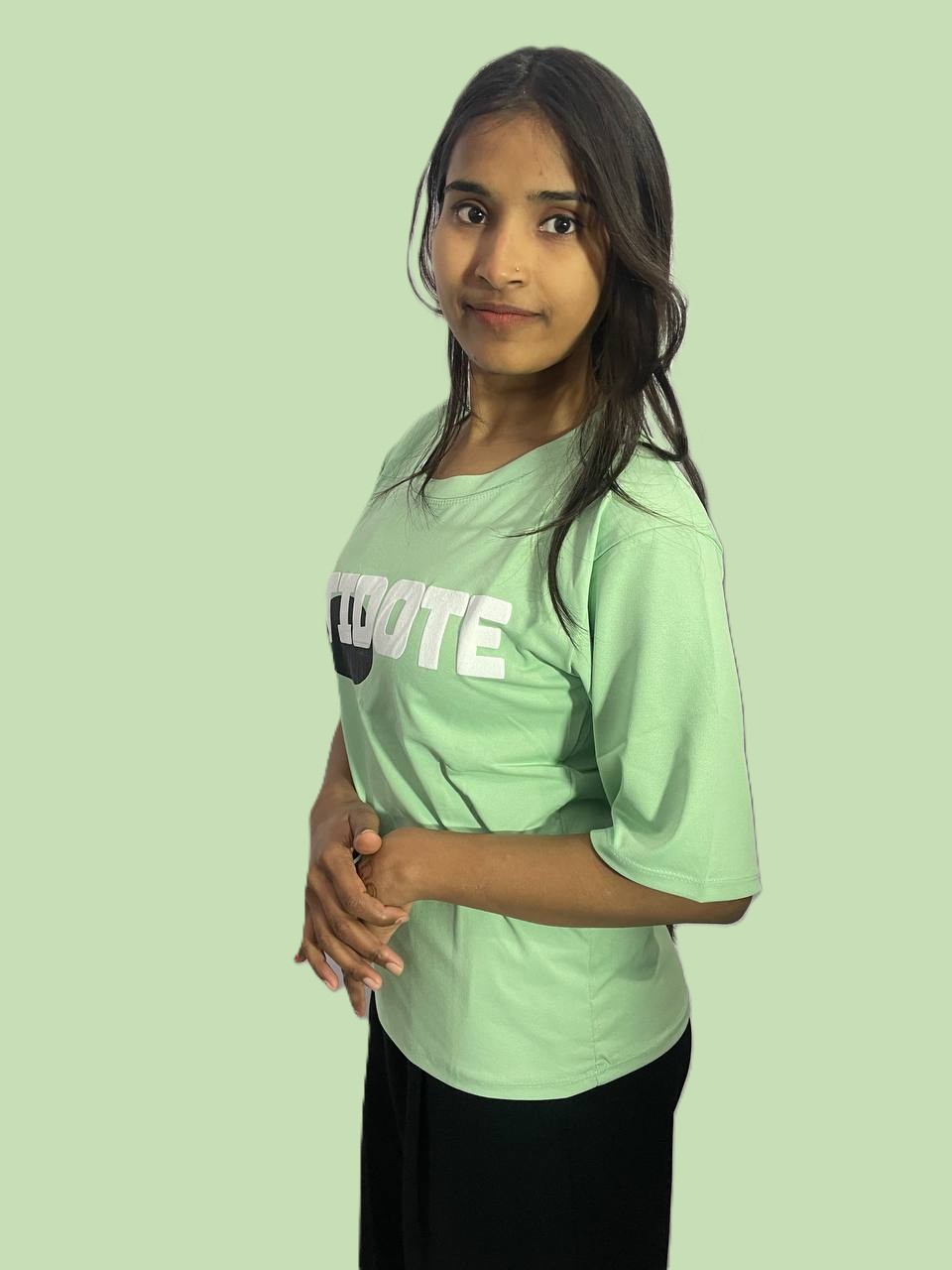 Stylish off-shoulder T-shirt with trendy graphic prints, offering comfort, confidence, and a modern casual look.